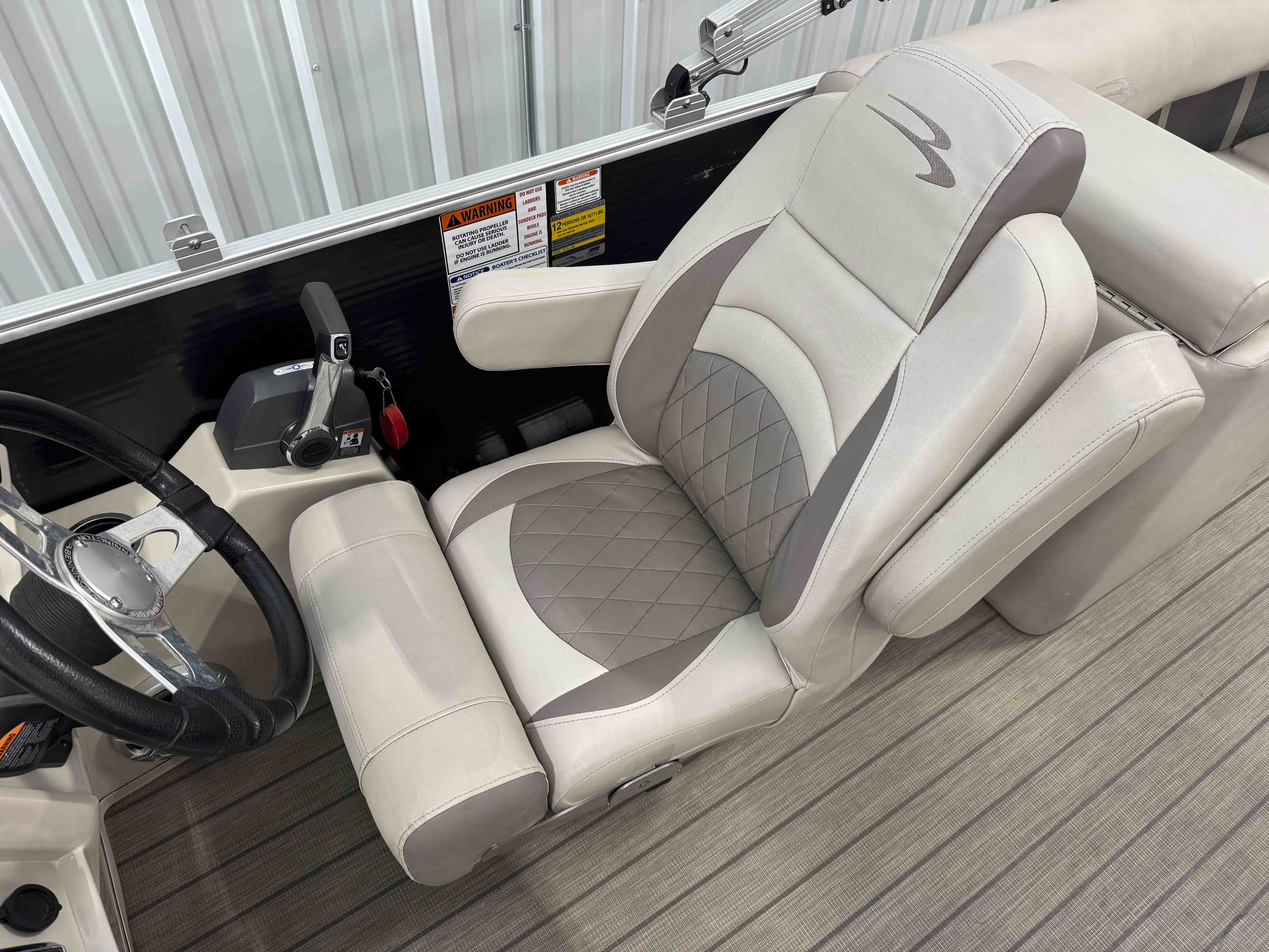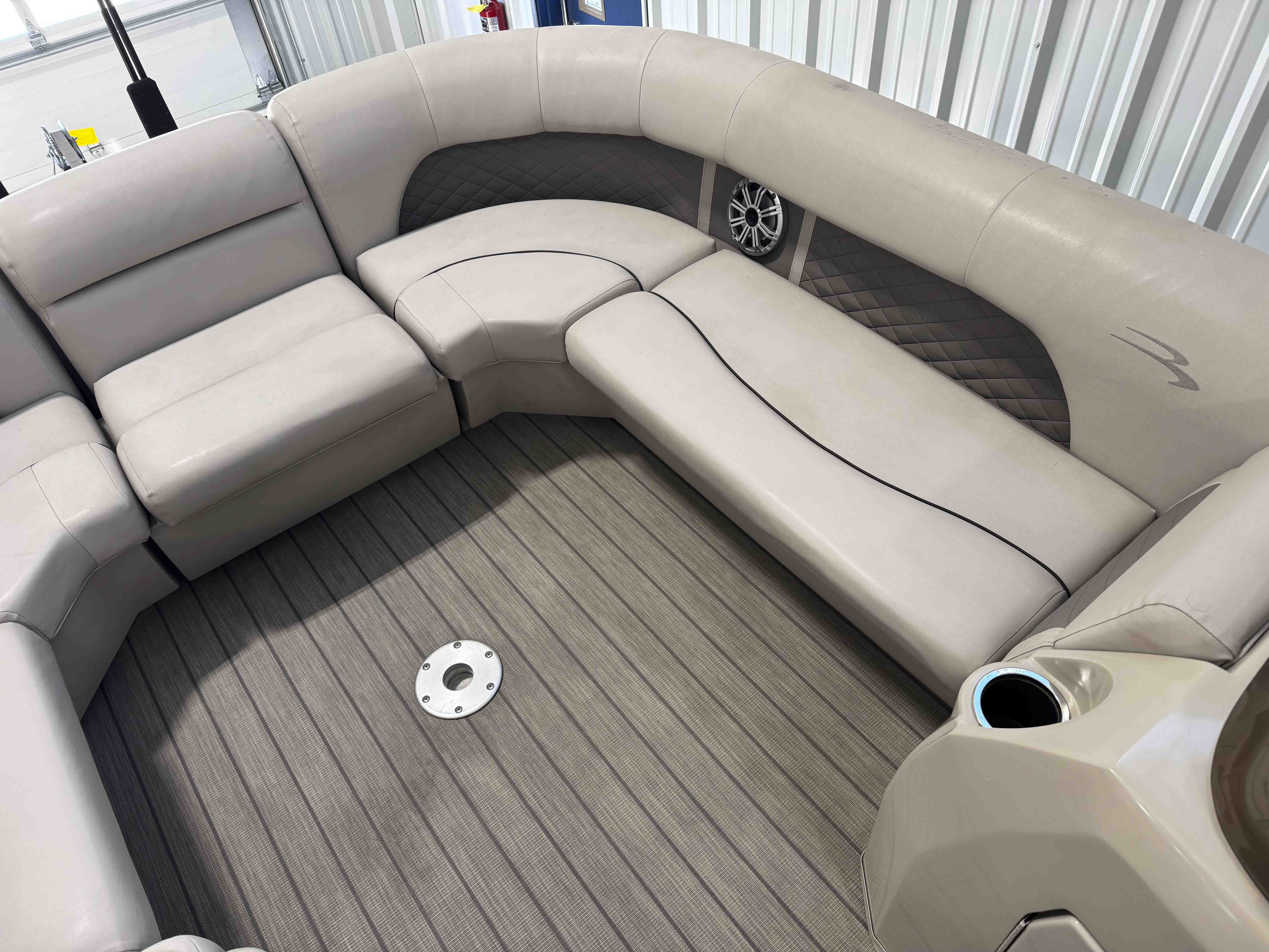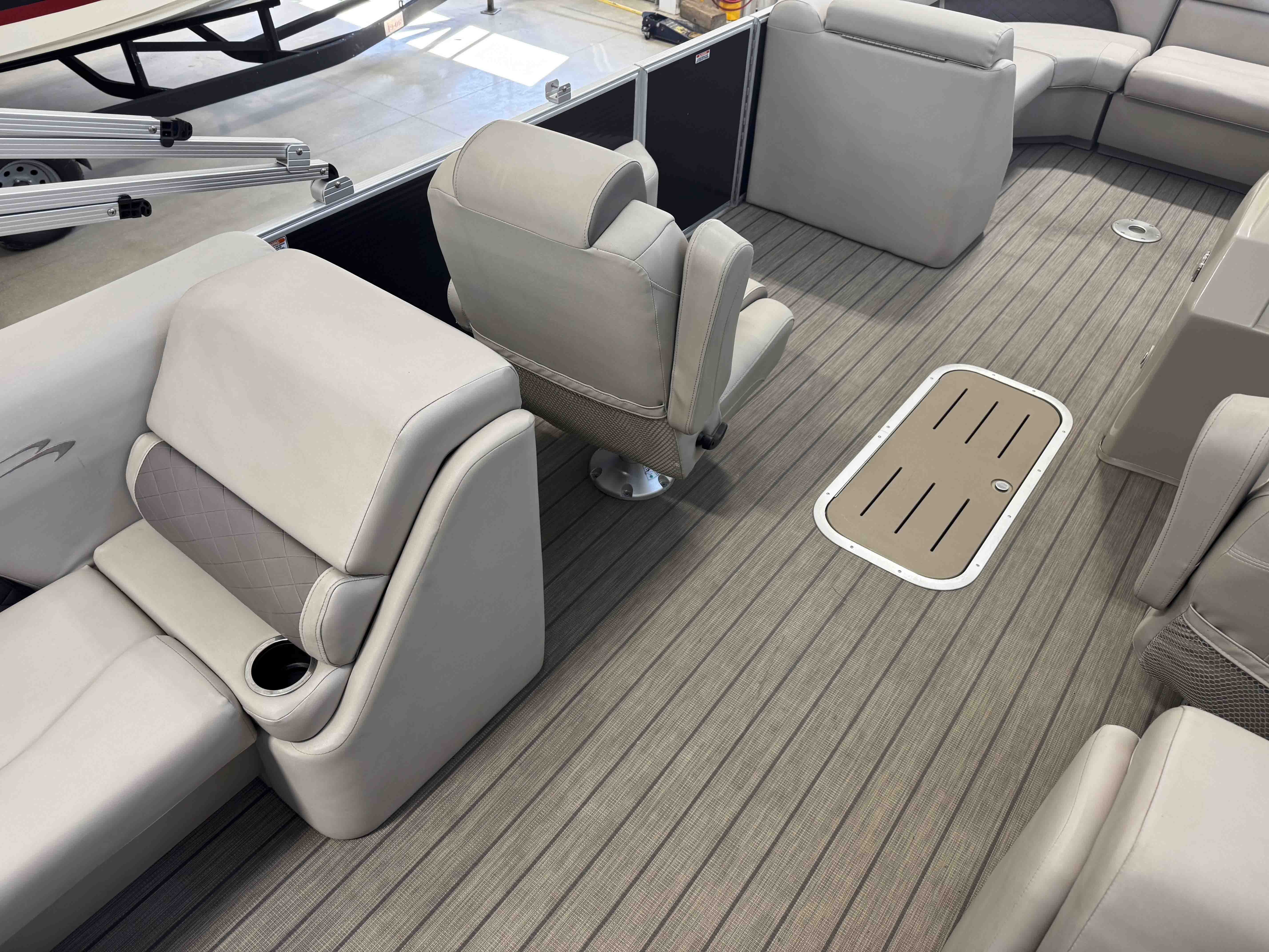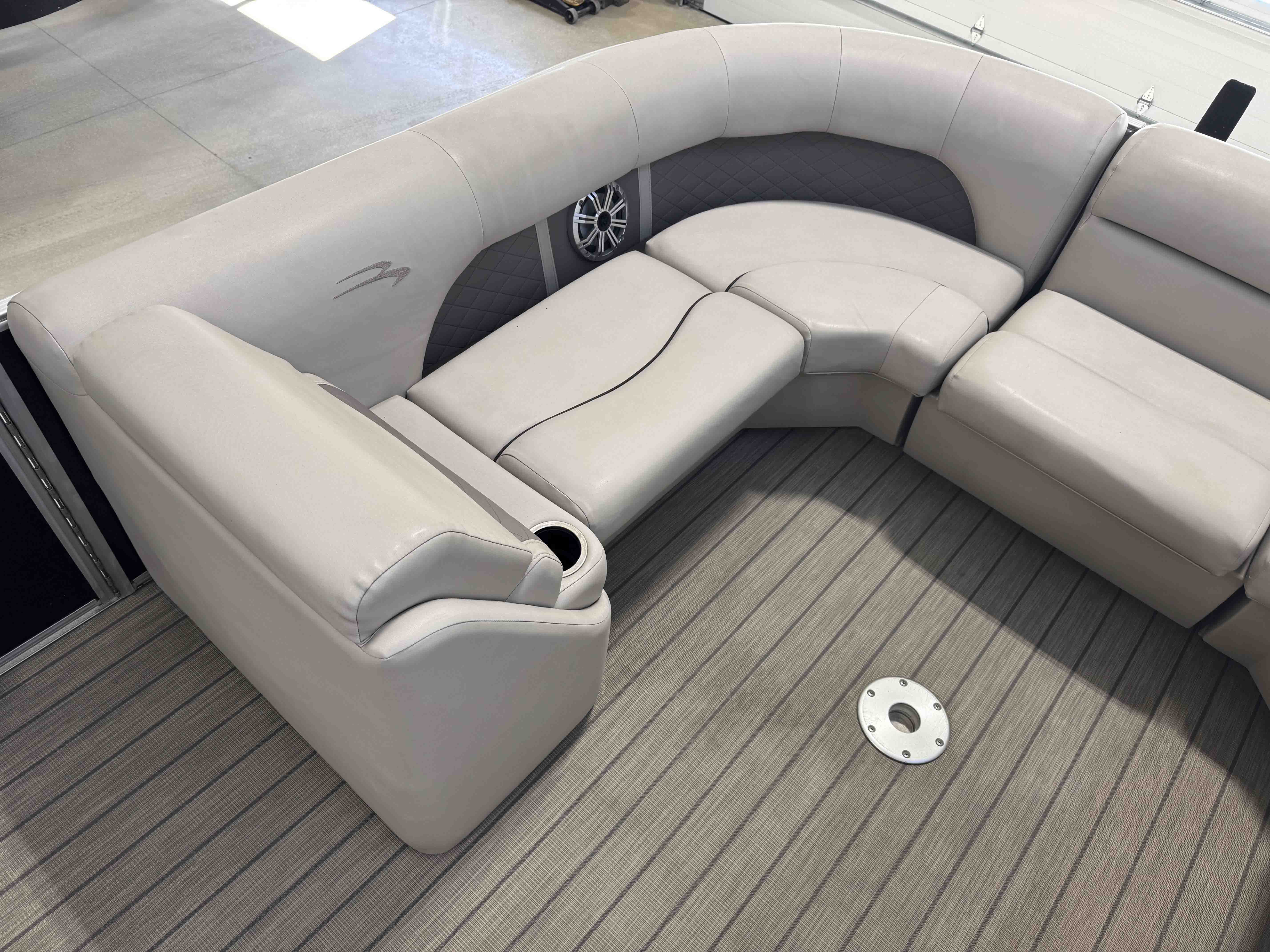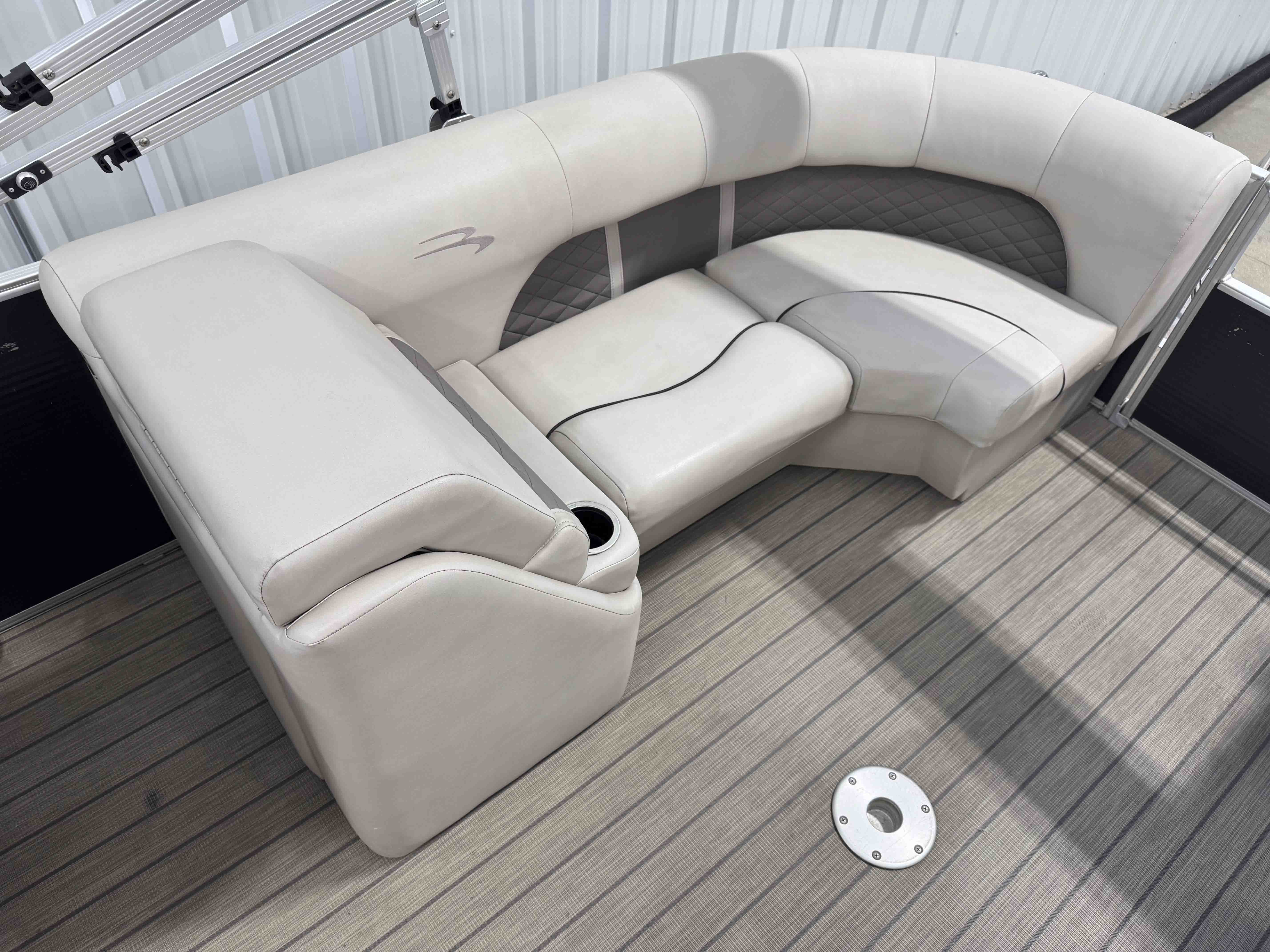 The 24SSRX blends classic Bennington comfort with a sporty, upscale feel, creating an inviting space for relaxed days on the water. Its smooth ride, clean lines, and well-balanced layout make it easy to cruise, anchor, and enjoy unhurried time with family and friends. Inside, plush lounge seating surrounds the cockpit, offering generous space to stretch out and settle in. The helm is designed for comfortable, straightforward control, while integrated storage keeps the deck organized and open. It’s a pontoon built for enjoyable lake days with the refinement Bennington is known for.
