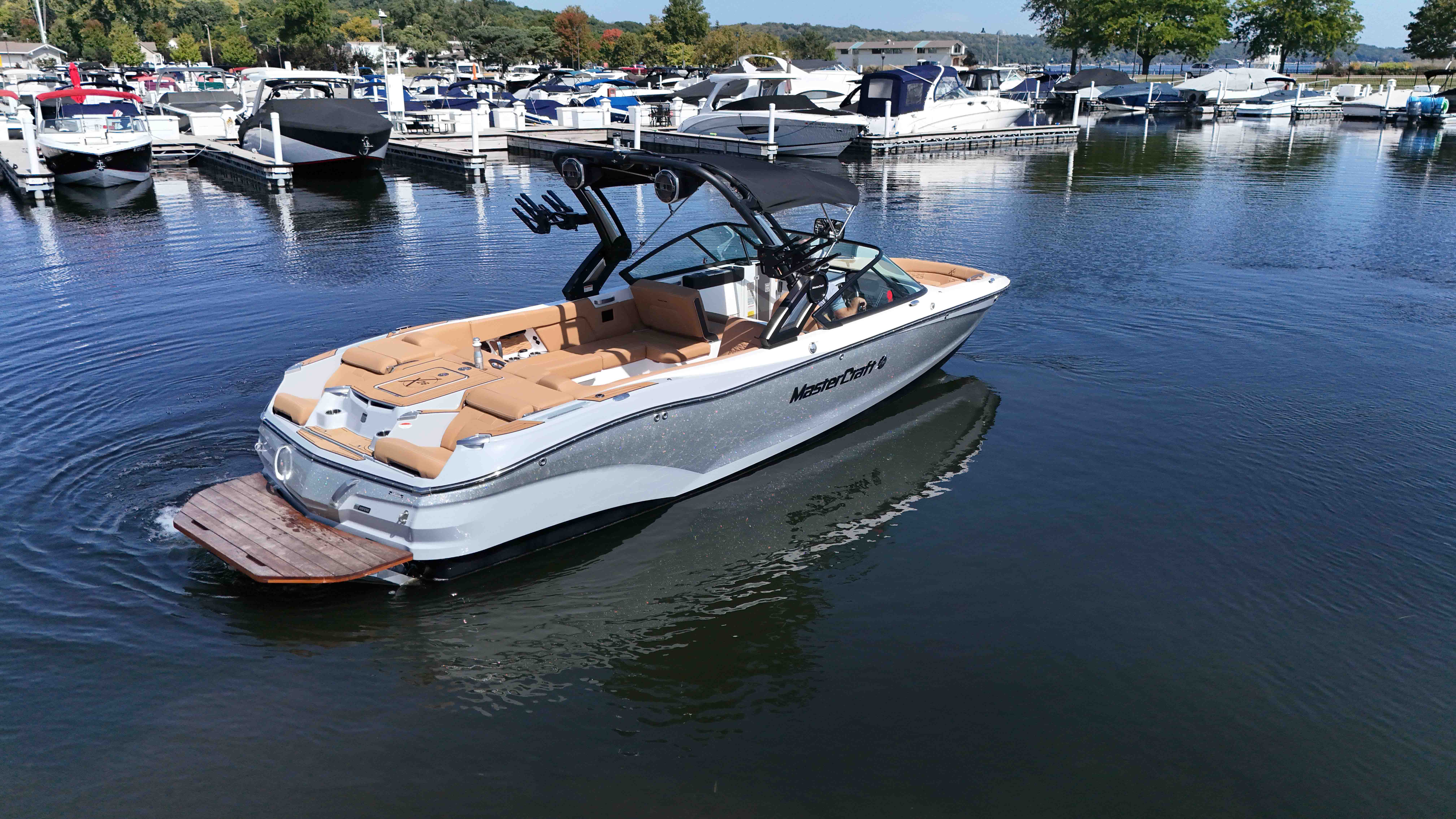 This 2022 MasterCraft X26 delivers the ultimate combination of luxury, power, and innovation. Designed for those who expect more from every moment on the water, it’s equally at home carving endless surf waves or hosting friends in refined comfort. The X26 is yacht certified and provides spacious seating for up to 18 passengers, complemented by premium finishes and cutting-edge technology throughout. Powered by an Ilmor 6.2L GDI engine and equipped with SurfStar, FastFill Ballast, and Dockstar Handling, this X26 offers precision control and smooth performance. From the RGB accent lighting to the dual-screen helm and Klipsch tower speakers, every detail enhances your experience. Complete with a matching trailer and a teak swim platform, this X26 is ready to elevate your time on the water in true MasterCraft fashion.