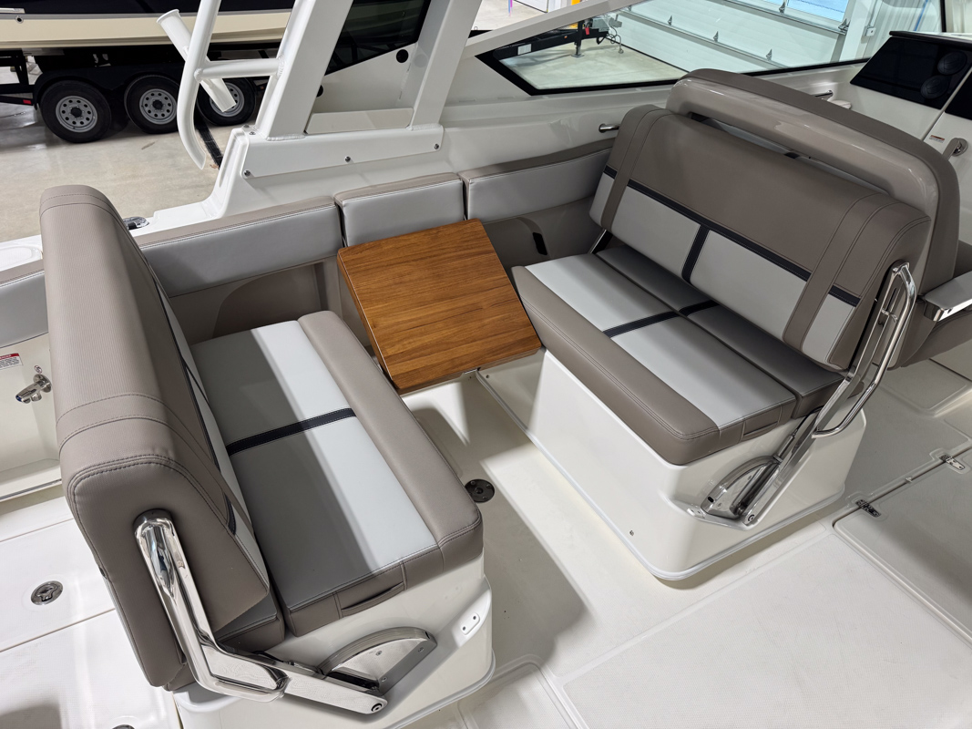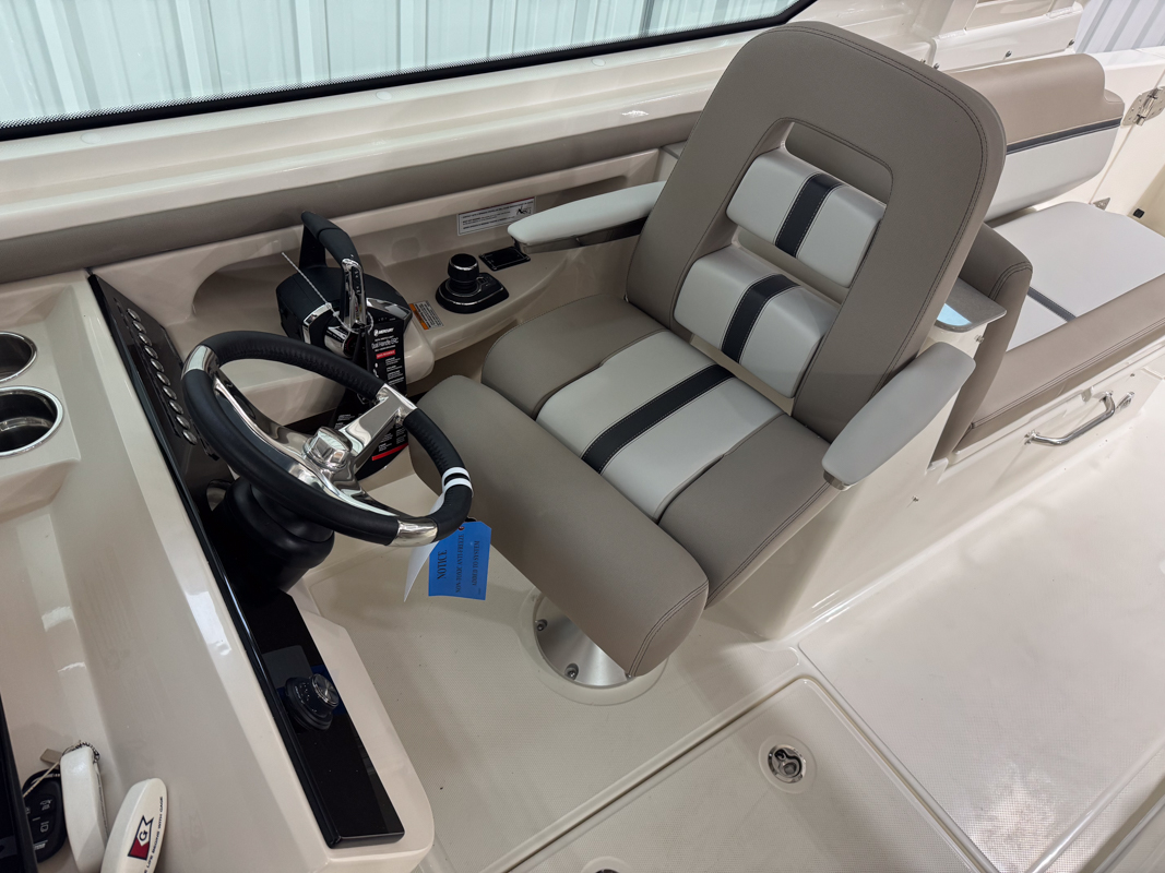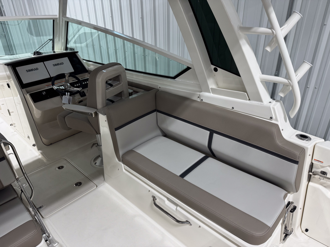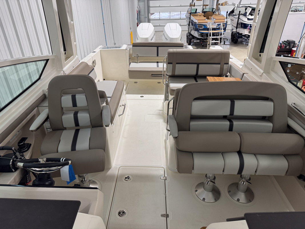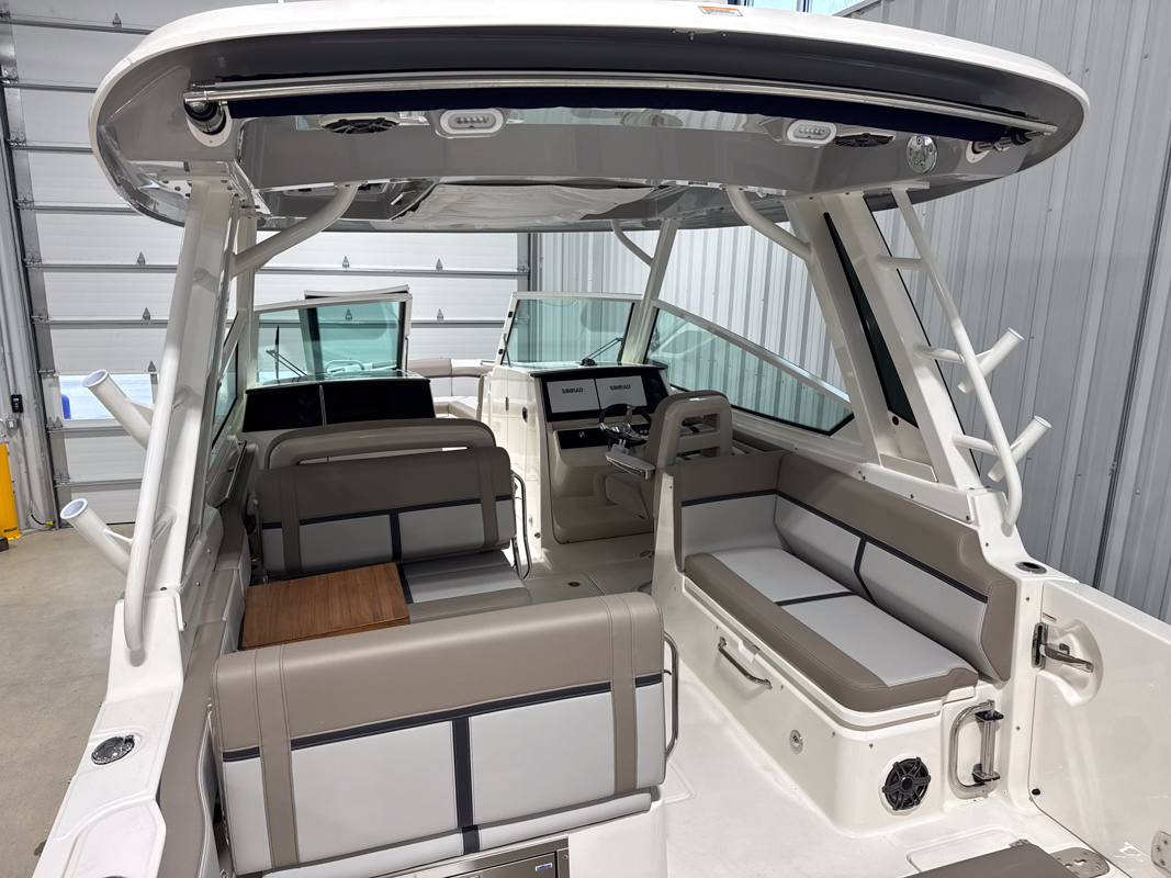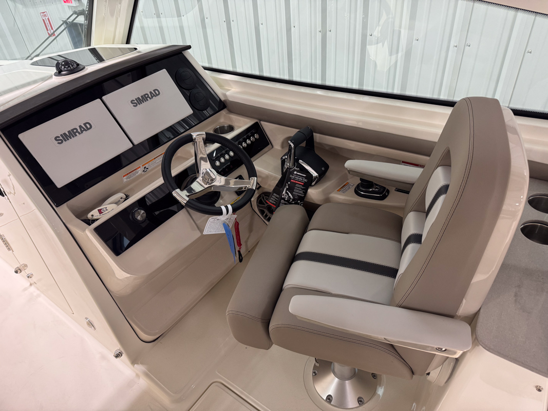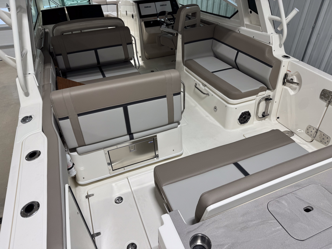 The 330 Vantage brings family and friends together with a spacious dual console layout that balances comfort, capability, and refined performance. An expansive deck is wrapped in luxurious seating, creating an open, social feel that works just as well for cruising as it does for full days on the water. With Boston Whaler’s legendary unsinkable hull and confident ride, this is a boat designed to handle every outing with ease. Inside, the cockpit is thoughtfully arranged with award-winning convertible seating, wide walkways, and excellent visibility from the helm. Integrated Simrad technology puts full control at your fingertips, while the hardtop, windshield options, and generous head provide comfort throughout the day. From relaxing at anchor to effortless cruising, the 33 Vantage delivers a premium experience for everyone on board.