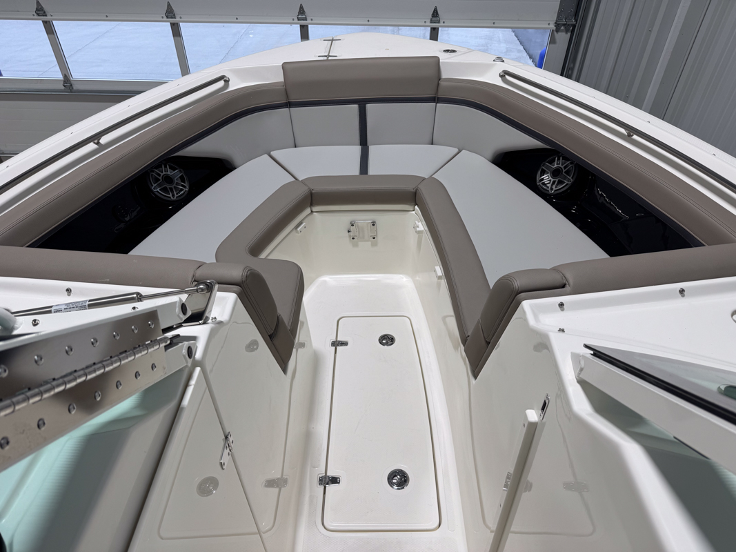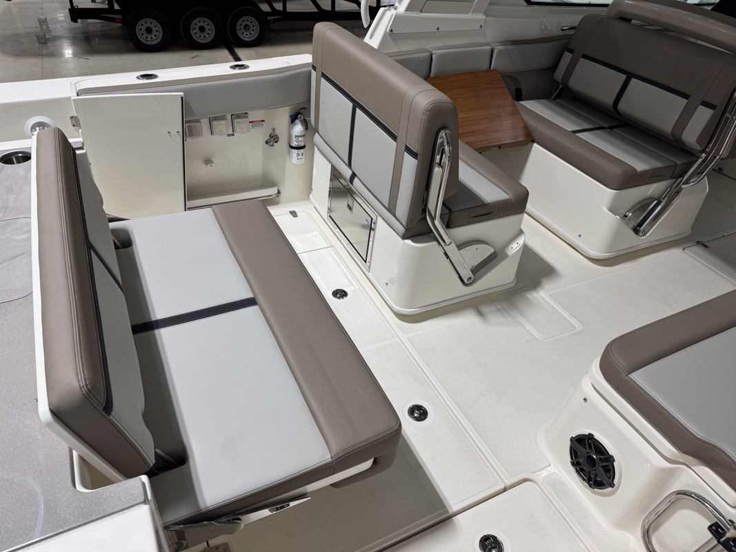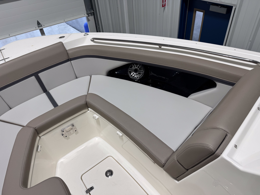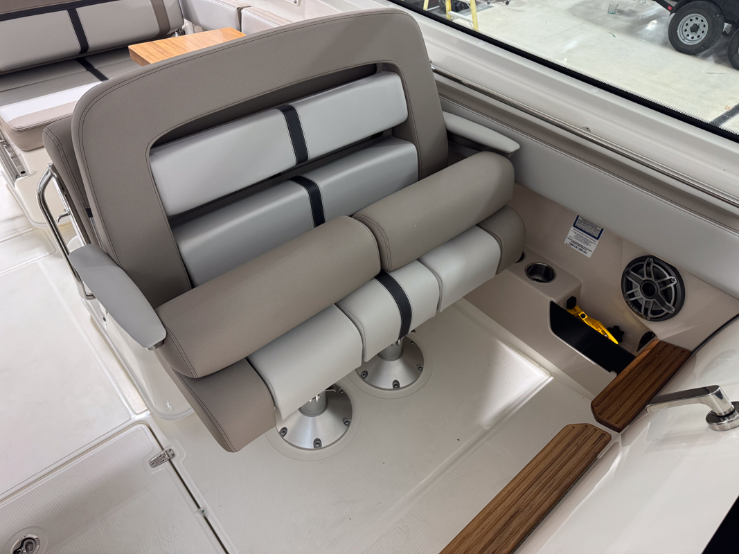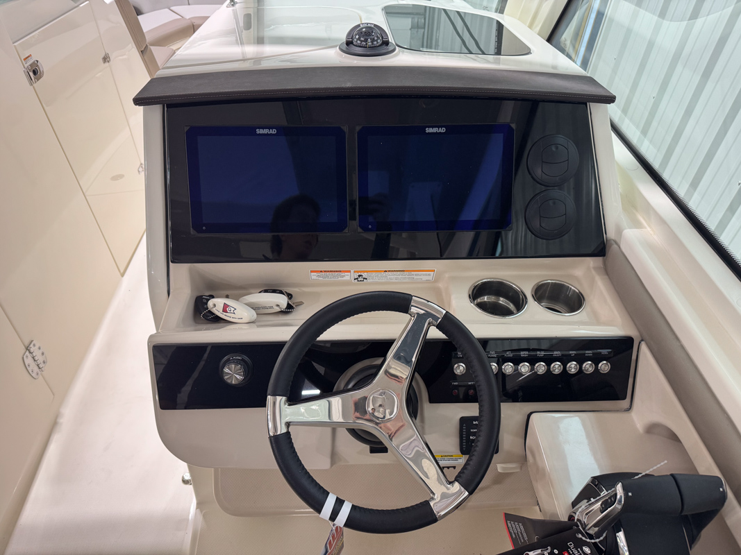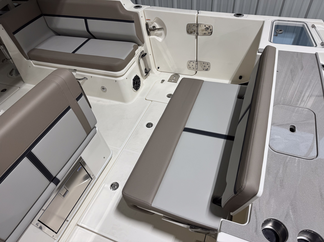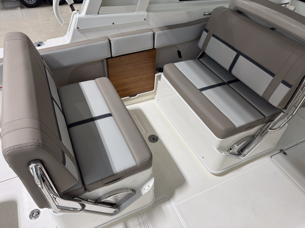 The 330 Vantage brings family and friends together with a spacious dual console layout that balances comfort, capability, and refined performance. An expansive deck is wrapped in luxurious seating, creating an open, social feel that works just as well for cruising as it does for full days on the water. With Boston Whaler’s legendary unsinkable hull and confident ride, this is a boat designed to handle every outing with ease. Inside, the cockpit is thoughtfully arranged with award-winning convertible seating, wide walkways, and excellent visibility from the helm. Integrated Simrad technology puts full control at your fingertips, while the hardtop, windshield options, and generous head provide comfort throughout the day. From relaxing at anchor to effortless cruising, the 33 Vantage delivers a premium experience for everyone on board.