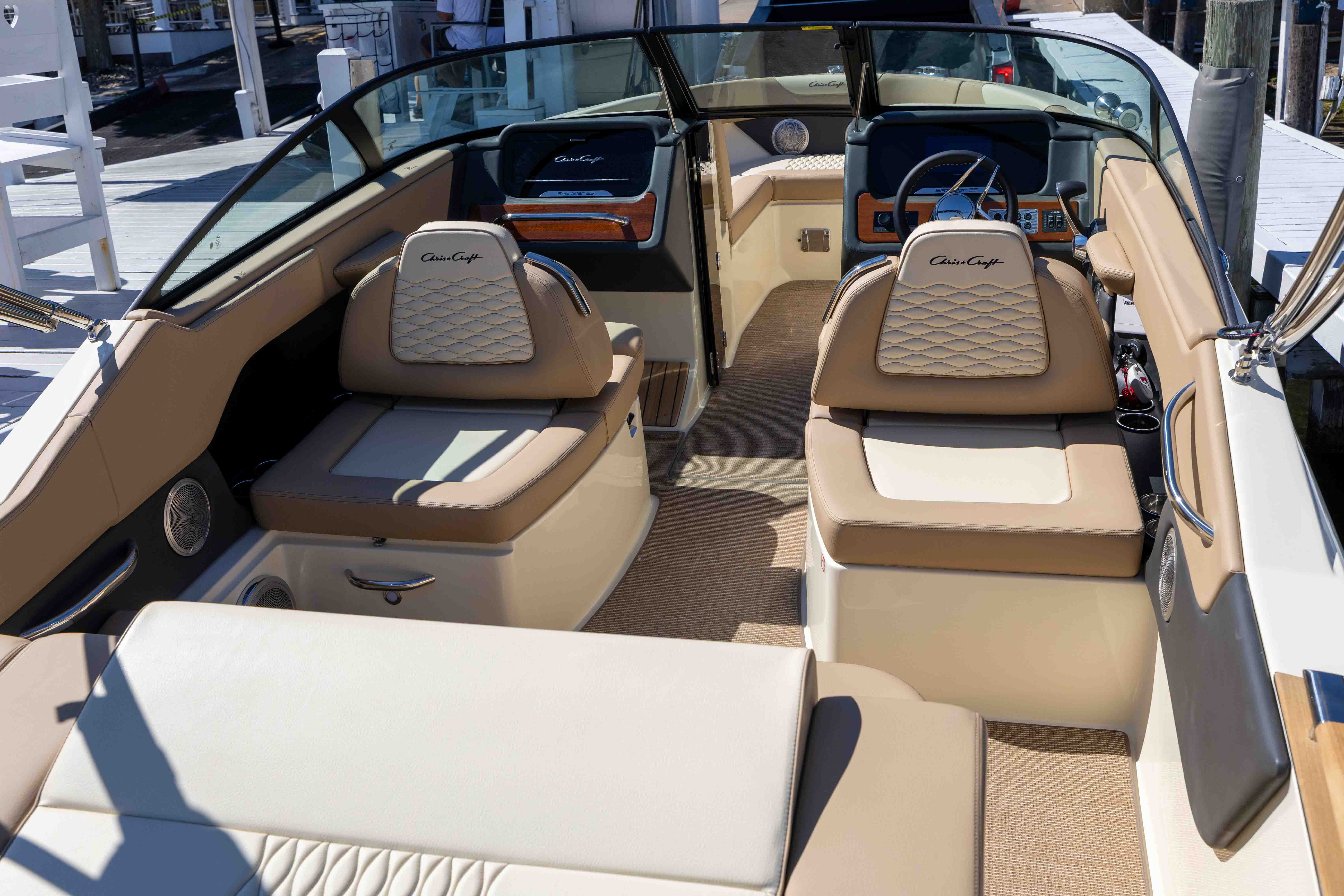 The 2026 Chris-Craft Sportster 25 perfectly captures the essence of modern luxury and timeless design. Blending handcrafted teak finishes with advanced performance, this runabout delivers a smooth, confident ride powered by the Mercury 6.2L 300HP engine. Its deep-V hull, refined detailing, and balanced layout make it as thrilling to drive as it is elegant to admire. With premium materials, upgraded technology, and meticulous attention to detail, the Sportster 25 elevates every moment on the water. Whether cruising, entertaining, or simply relaxing, it offers the signature Chris-Craft experience—style, comfort, and performance in perfect harmony.