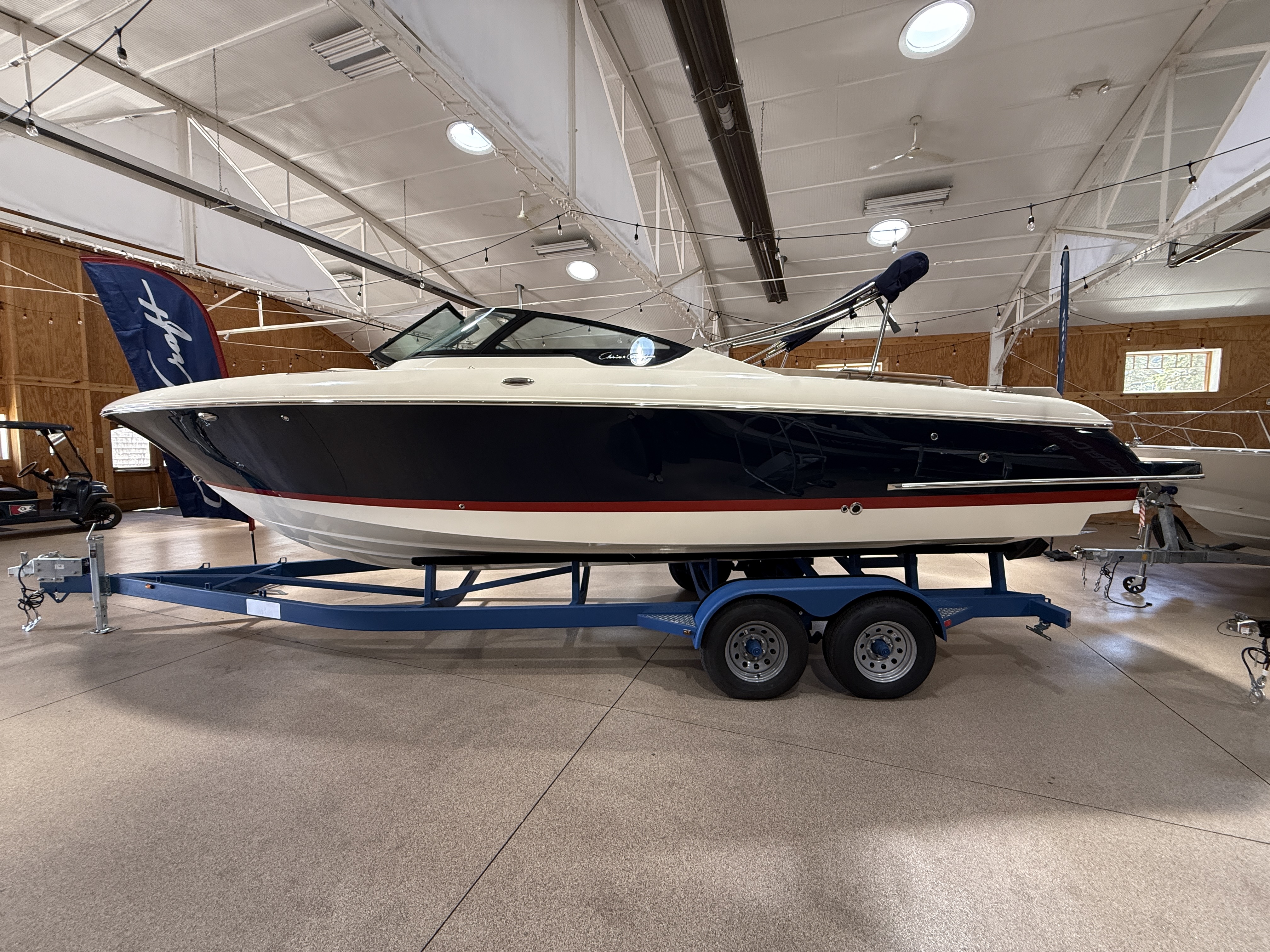 The 2025 Chris-Craft Sportster 28 blends modern performance with the brand’s signature handcrafted luxury. Designed for smooth handling and a refined ride, this 28-foot runabout pairs timeless styling with powerful performance from its Mercury 8.2L 380HP engine. Elegant teak accents, a deep Midnight Blue hull, and thoughtful design details make it stand out wherever it goes. Inside, the Sportster 28 offers spacious comfort and polished finishes. From premium audio to intuitive helm technology, every feature enhances your experience on the water. Whether cruising, relaxing, or entertaining, this boat captures the perfect balance of power and sophistication.