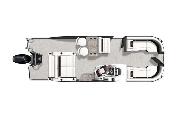 The highlight of the Ultra-Entertainer floorplan on a Barletta boat is the versatile high-top table accompanied by two upholstered swivel stools with additional multi-function bench seating perfect for hosting family and friends of all ages. Moving to the stern of the boat, you will find the one-of-a-kind Ultra-Lounge, featuring 5 different seating positions. To round off this floorplan, you will find the standard chaise-lounge seating in the bow designed for comforting lounging and extra seating.